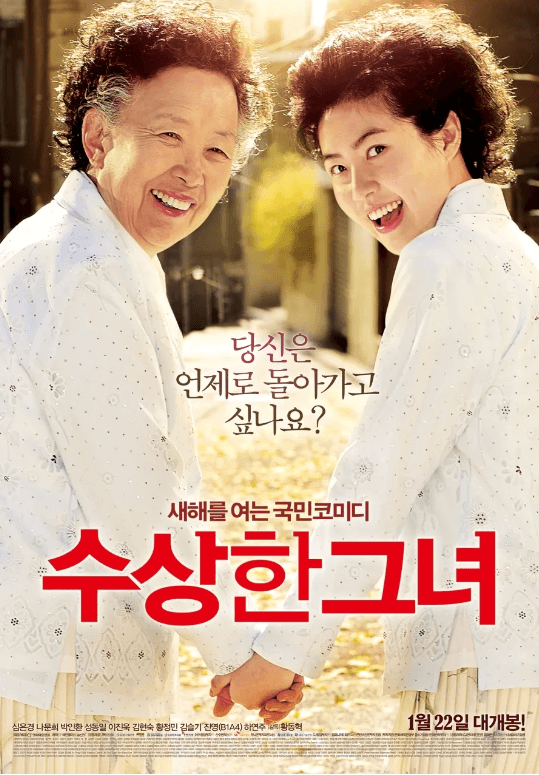 수상한 그녀 국민코미디 영화다. 가끔 사람들이 하는 소리가 있다 10년만 젊었어도라고 말하기도 하는데 이영화는 무려 50년이나 과거로 돌아가 전에 못 이룬 꿈도 이루는 재미있고 유쾌한 영화다. 감독은 황동혁이고 주연으로 오두리역 심은경과 오말순역으로 나문희가 출연해 맛깔스러운 연기력으로 처음부터 끝까지 재미를 준다. 특별출연으로 젊은 박 씨 역으로 김수현까지 나와 웃음 포인트를 주고 있다